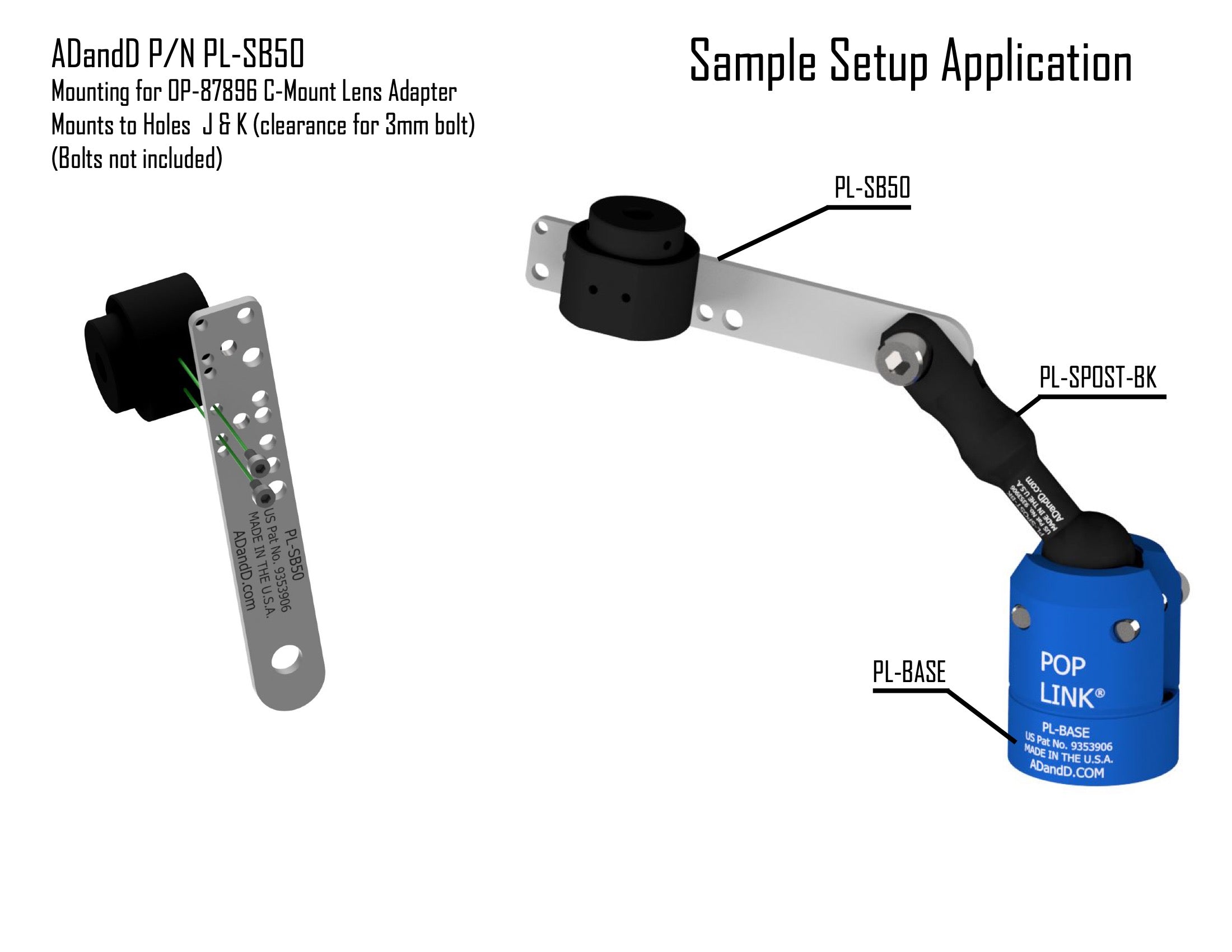 Keyence OP-87896 C-Mount Lens Adapter mounts to SB50 Holes J & K (clearance for 3mm bolt)